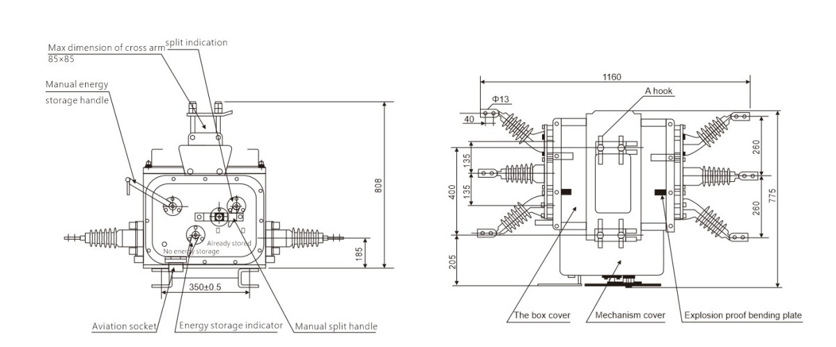 Zewnętrzny wyłącznik próżniowy SF6 serii ZW20 wyprodukowany w Chinach jest również wyposażony w dodatkowe praktyczne funkcje: zabezpieczenie nadprądowe, wskaźnik magazynowania energii sprężyny mechanizmu oraz gniazdo lotnicze do wtórnych połączeń elektrycznych. Parowanie z inteligentnymi kontrolerami jest niezwykle łatwe.